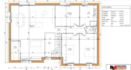 En vente : à moins de 9 km de la Belgique et du Luxembourg et à deux pas de Thionville, bénéficiant d'un emplacement d'exception dans Chenières (54720), Maisons Horizon Metz vous propose cette maison de 5 pièces de 200 m². Son intérieur offre trois chambres, une cuisine et une salle de bains.